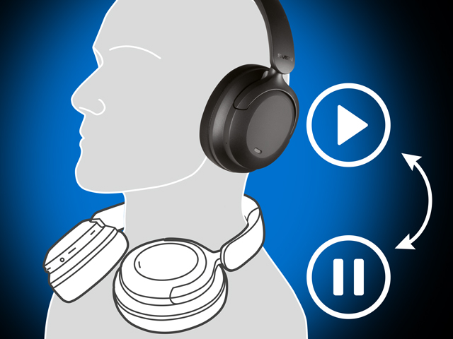 The touch sensor automatically pauses the track when you remove the headphones and resumes playback when you put it on.