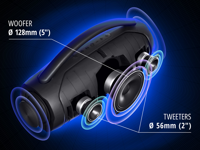 Connect two speakers via a wireless channel and create a stereo-pair powered by TWS technologies to throw a great party! Powerful wide format stereo-sound will create unforgettable music image!